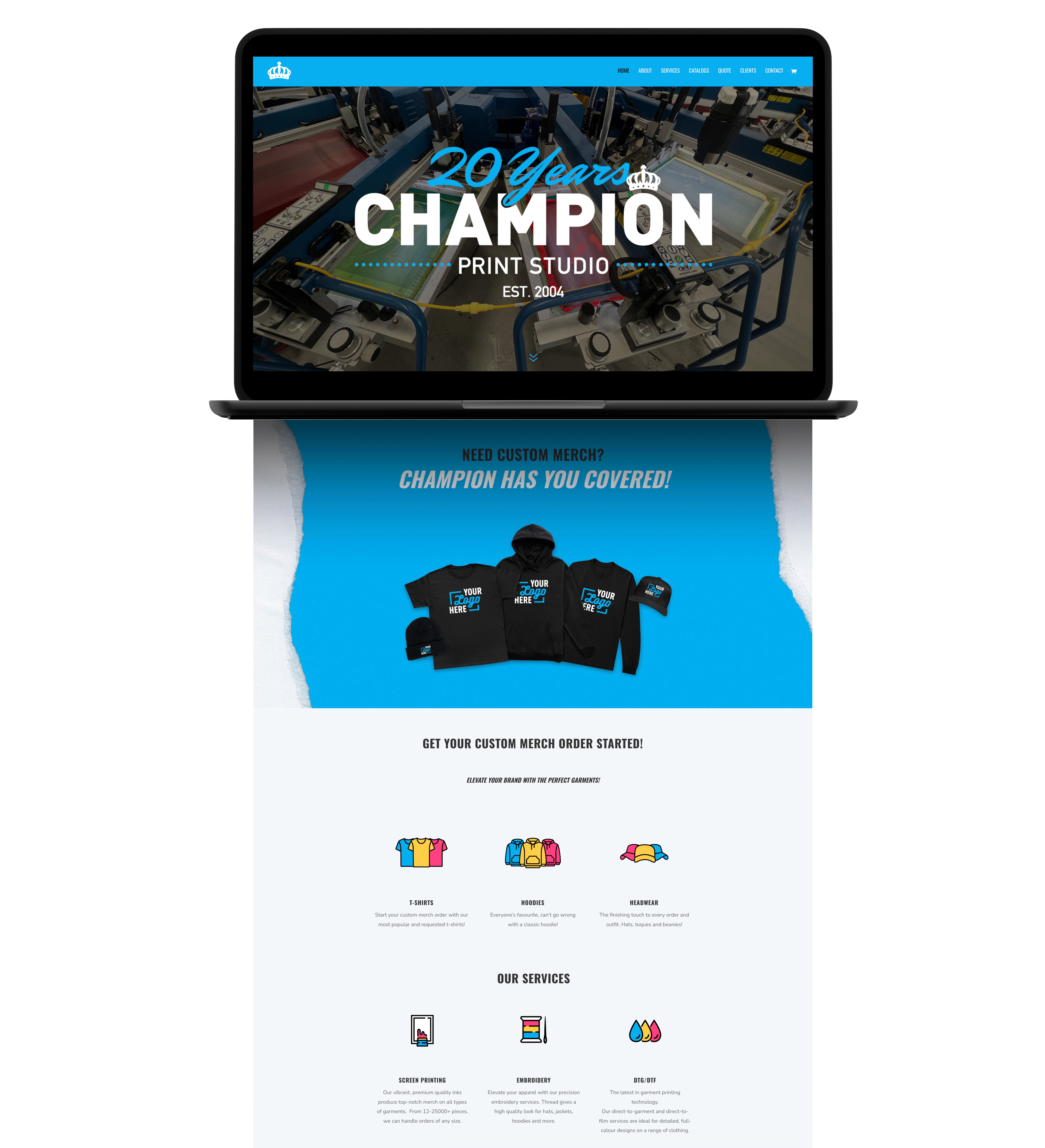 Champion also wanted to redesign and improve the website to represent more of their core values while bring geared towards direct to consumer experience. They wanted it to be clear on first arrival, that they are an established company with a professional attitude without the corporate vibes. The site was built on WordPress and has WooCommerce plug-in for an E-Commerce integration. You can check it out below.If you’re looking for shirts, hoodies or hats Champion will sort you out!